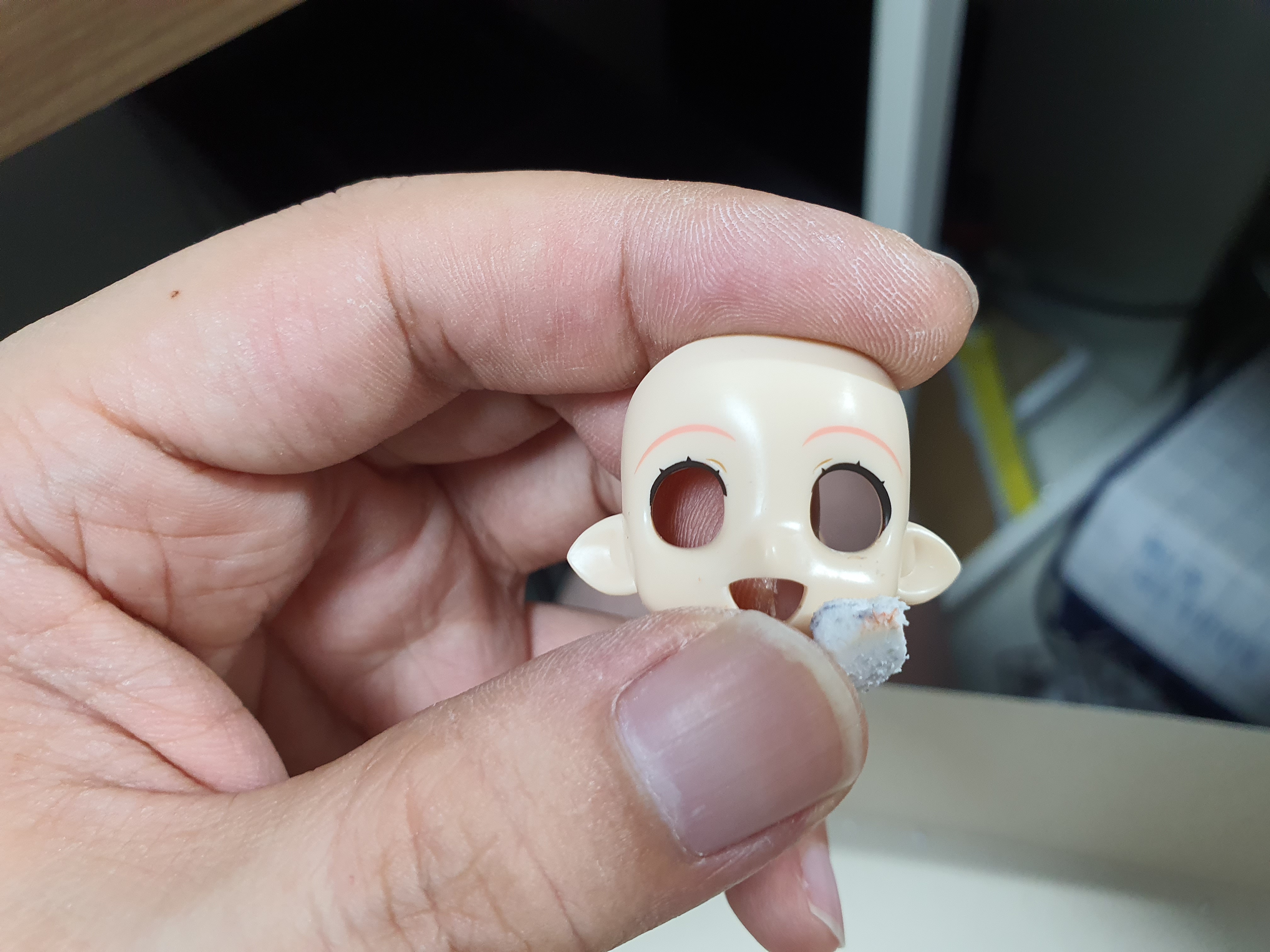 그래서 얼굴 표정 부품에 결합하고 분리하는 과정에서 또다시 아까와 같은 도색 까짐 현상이 발생할 우려가 상당히 크다.