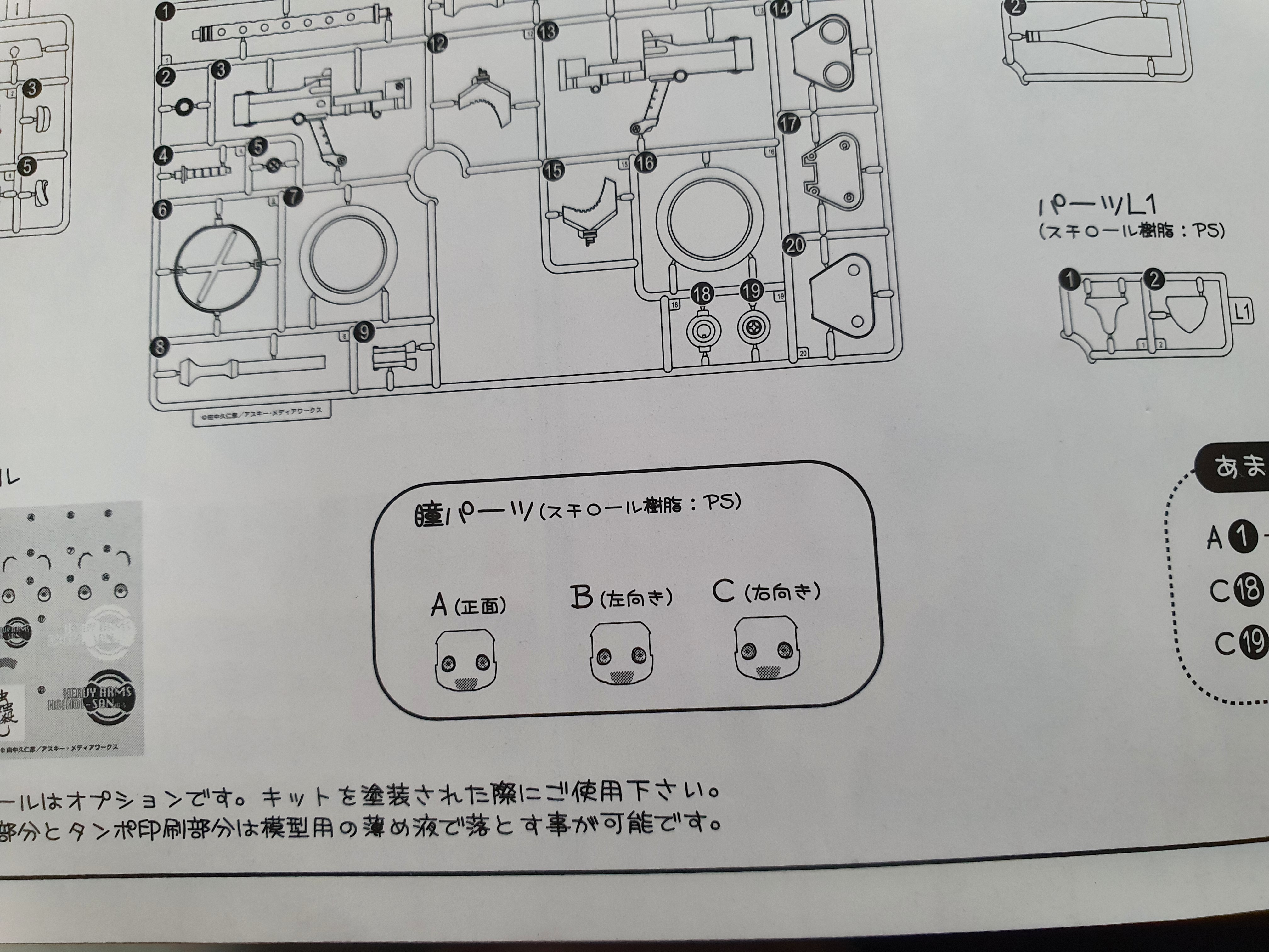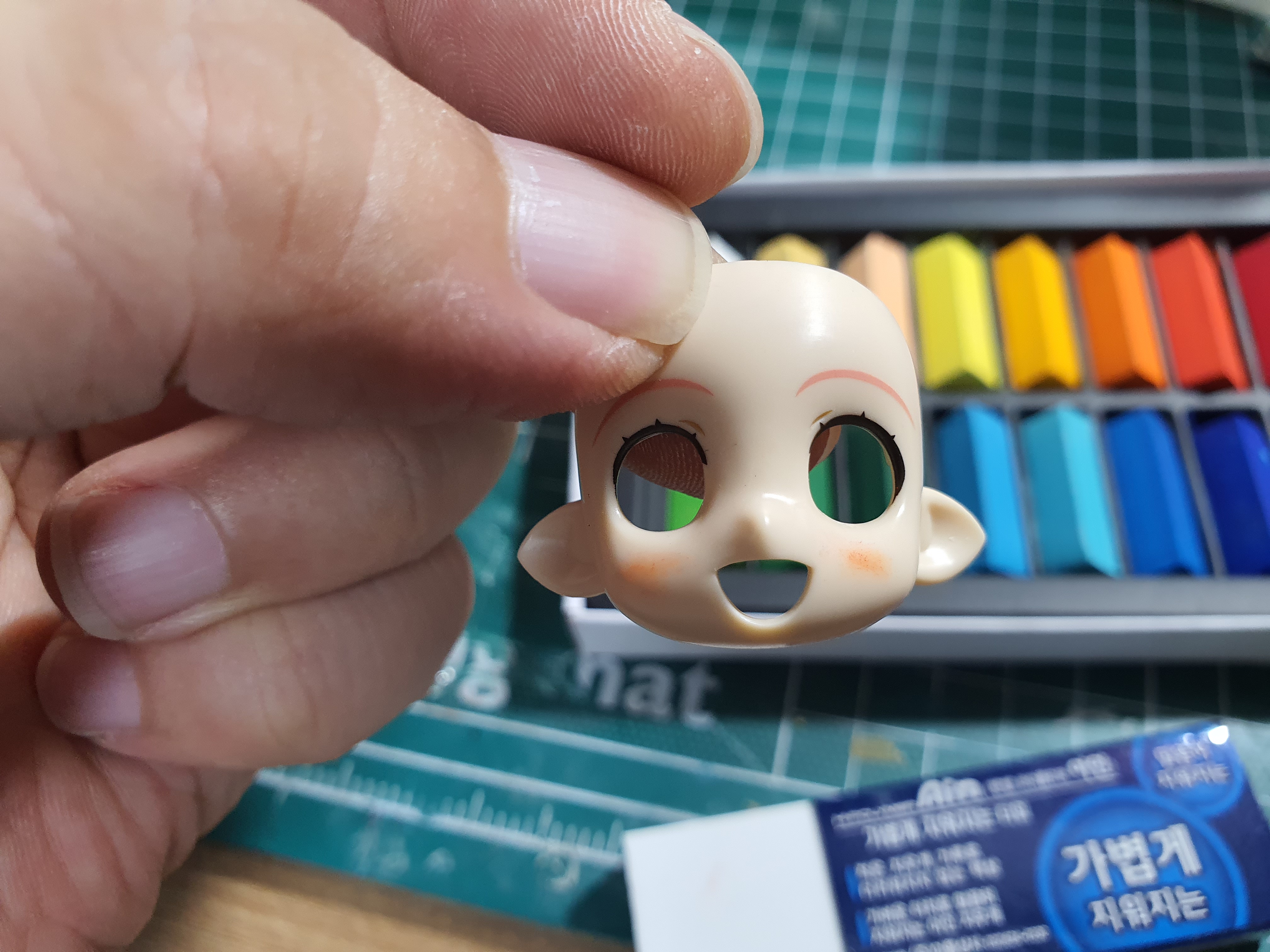 눈동자의 위치를 예쁘게 잡아보려고 얼굴 부품을 조립한 상태에서 데칼 작업을 진행하려고 계획했었다.